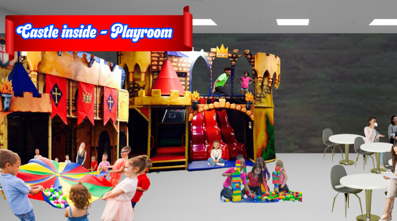 Introducing the Castle playroom for all knights, princesses, and other fairytale heroes! The playroom will serve as an inside shelter for guests and a perfect place for Summer Day Camps.